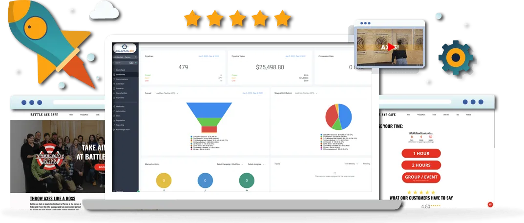 Built by Avalanche Advertising, an award winning digital marketing agency located in Cleveland, Ohio. Avalanche 360 is the most no-brainer solution for your growing axe throwing business. Gone are the days of having to duct tape multiple platforms together to make it all work. When we say all-in-one, we mean all-in-one!